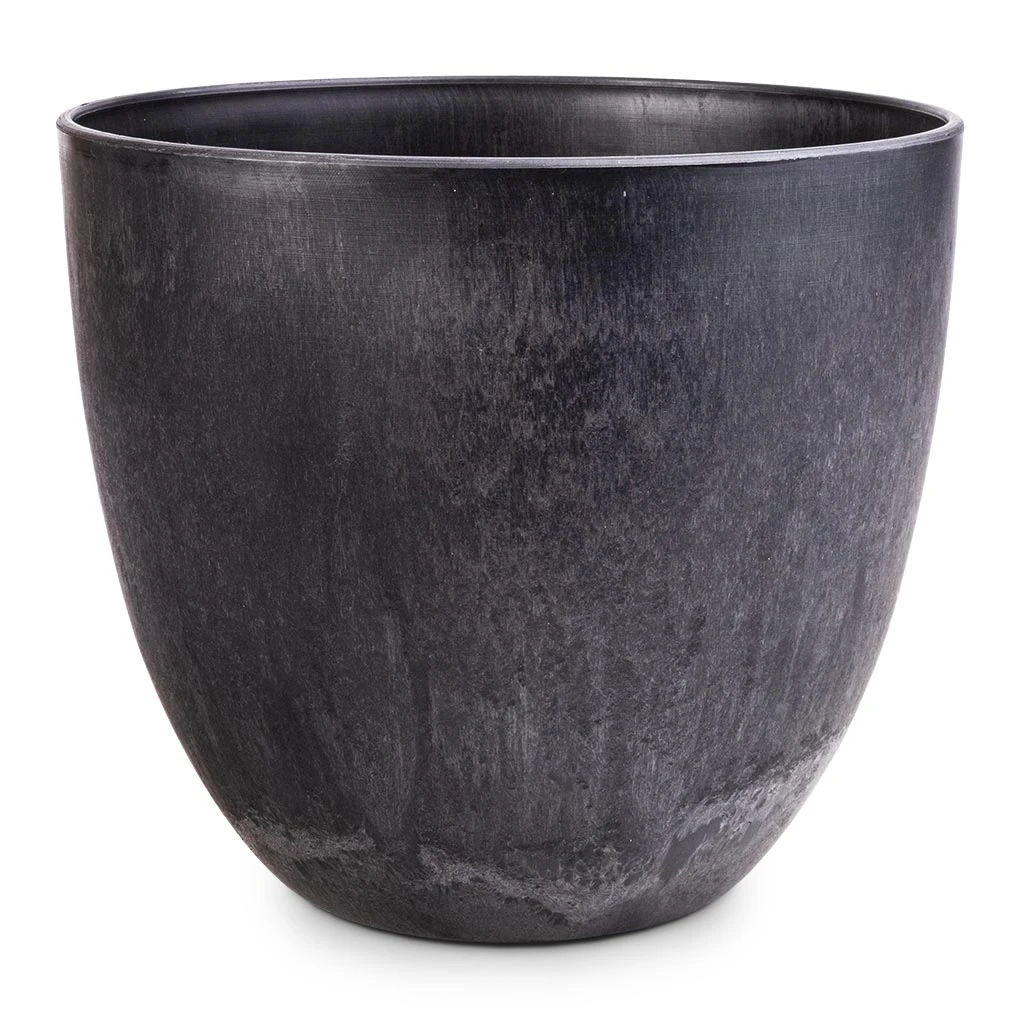 The Bola artstone planter has a contemporary egg shape with a dark grey-black matt stone effect finish.