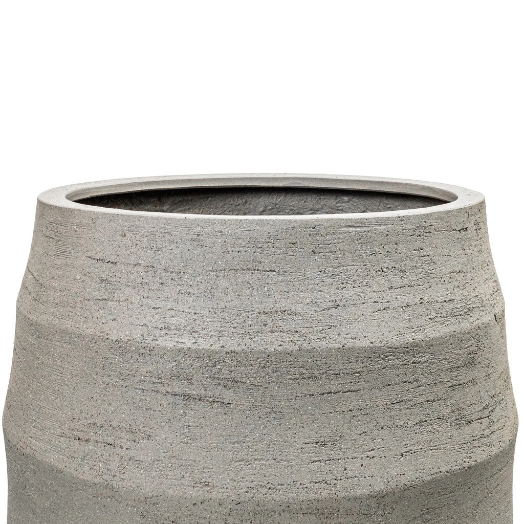 Crafted with a blend of crushed stone, it presents a sturdy, concrete-like appearance that seamlessly blends with its lightweight and resilient fiberglass-reinforced resin construction. This unique combination ensures durability while maintaining an elegant aesthetic suitable for both modern interiors and outdoor gardenscapes.