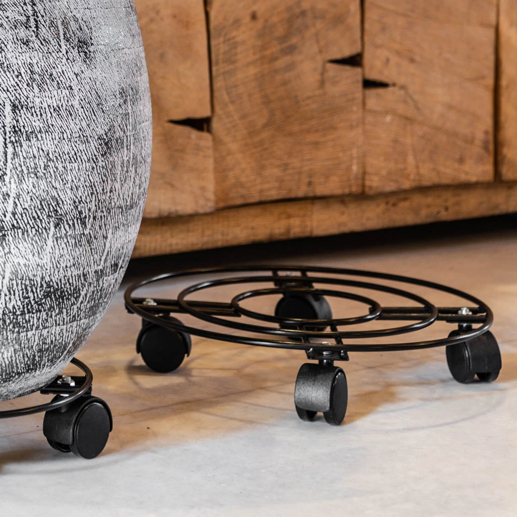 Crafted with a minimalist industrial aesthetic, this trolley features a circular metal frame finished in a sophisticated matt black coating. Its low-profile design ensures that the focus remains on your beautiful plants while providing a sturdy, mobile base that blends into any modern or traditional interior.