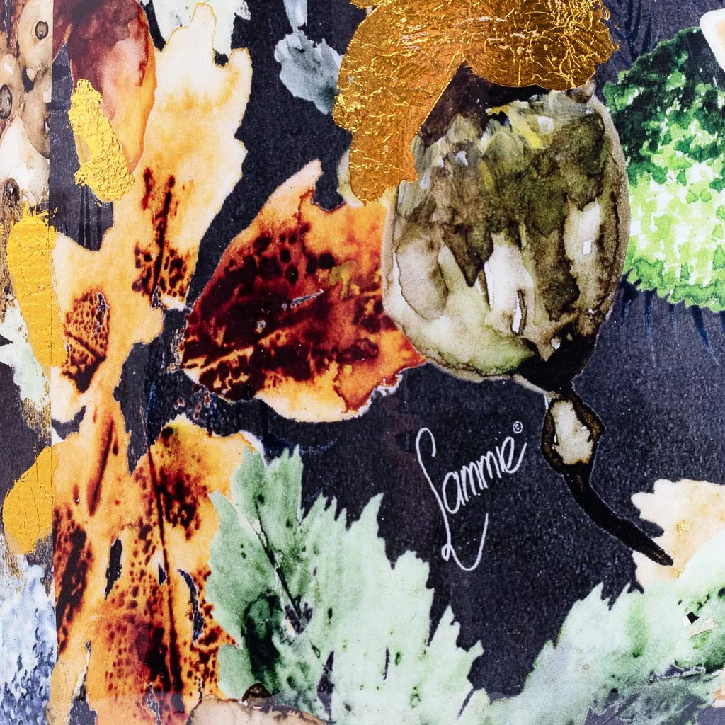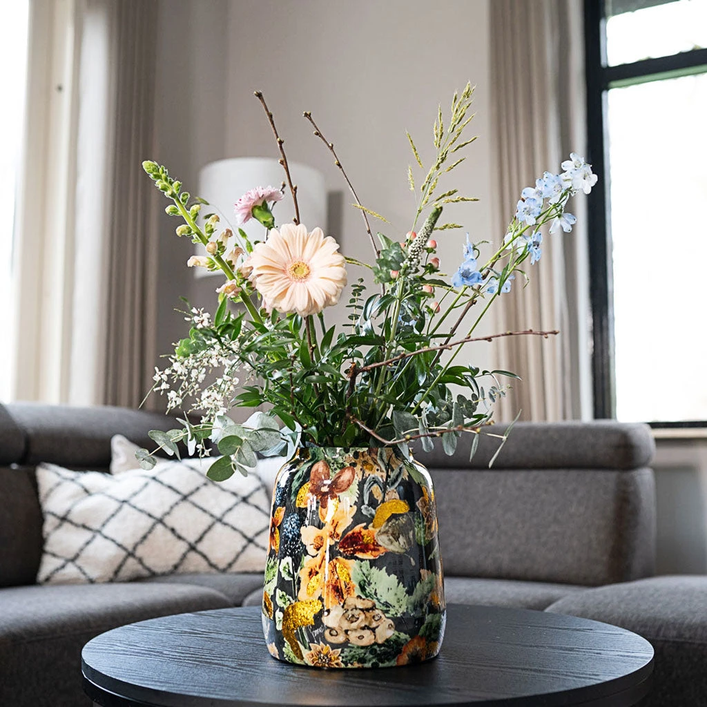 Lammie’s elegant design features nature-inspired artwork on its surface. The navy blue vase is beautifully moulded and adorned with flower, foliage and berry designs, enhanced by a lustrous gloss. Subtle gold embellishments add a touch of sophistication, elevating its visual appeal with added opulence and luxury.