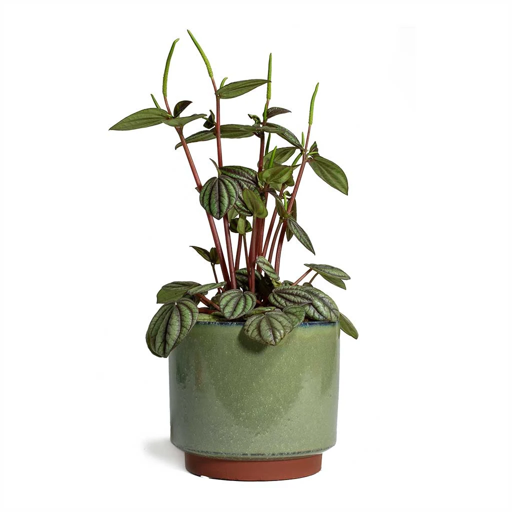 A classic retro-cylinder plant pot with a modern muted sage-grey glaze complimented by a rust coloured base. Durable waterproof stoneware with simple, soft colour accents for stylish living.
